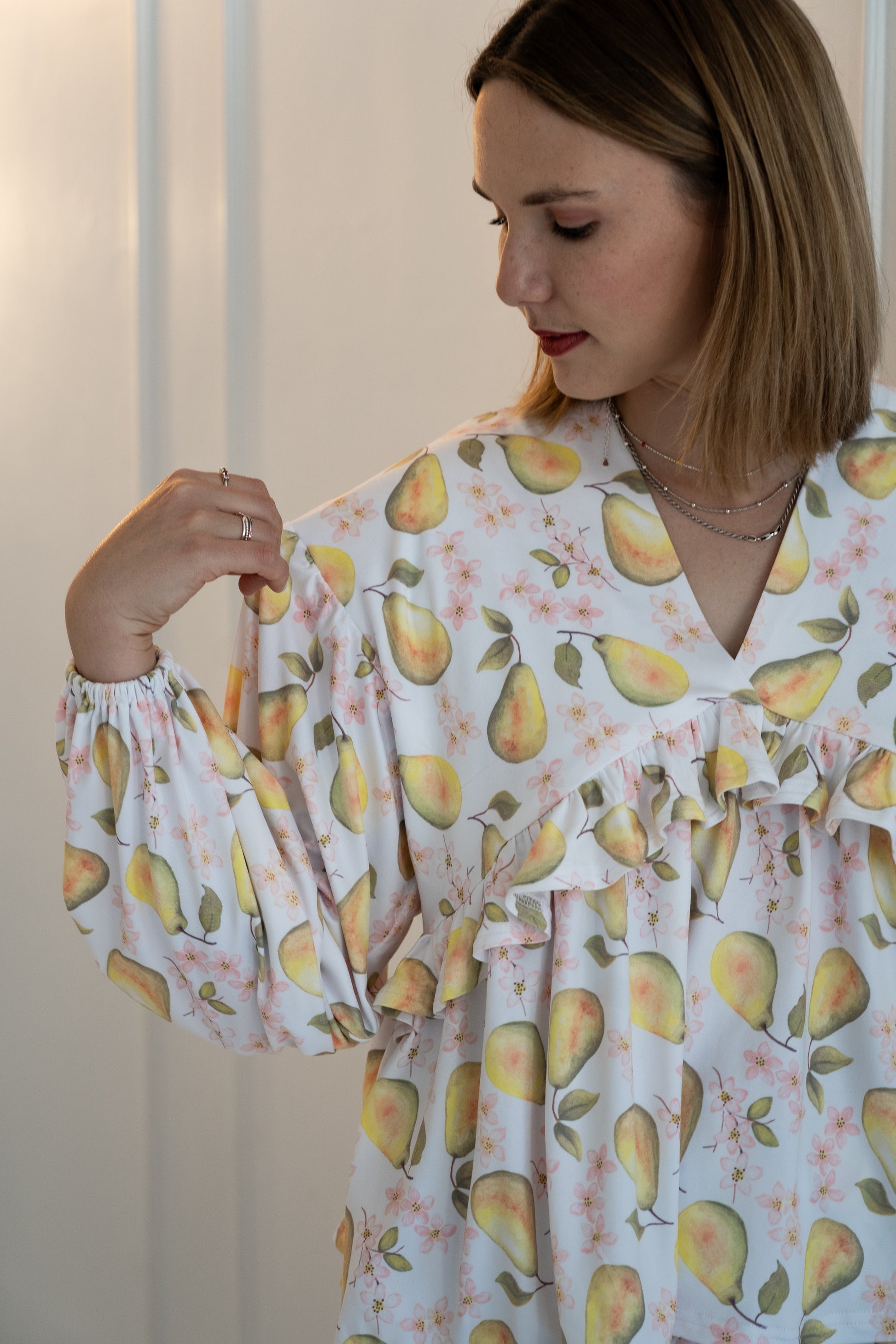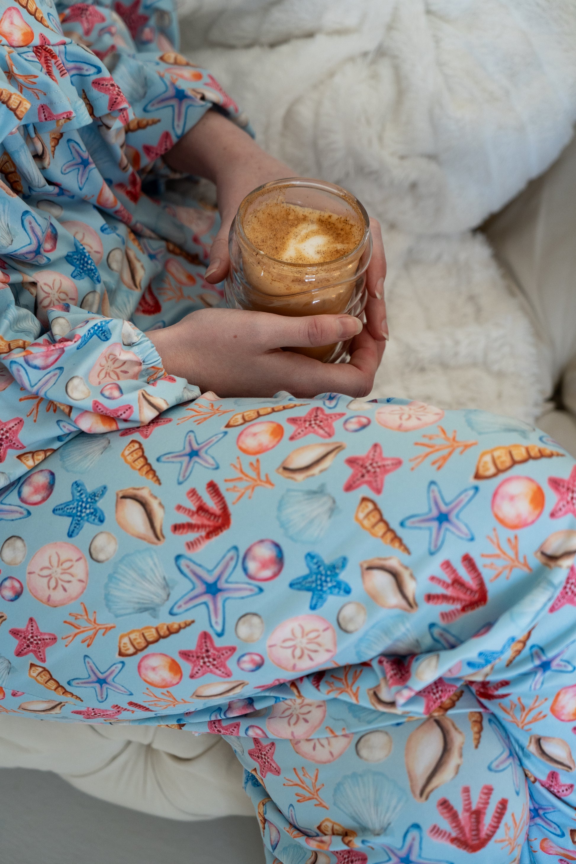 Slip into comfort and creativity with our limited-edition pajama set, crafted from luxuriously soft fabric and adorned with a one-of-a-kind print. Each pattern was lovingly hand-painted by a local artist before being digitally printed onto the fabric, bringing art to life in wearable form.